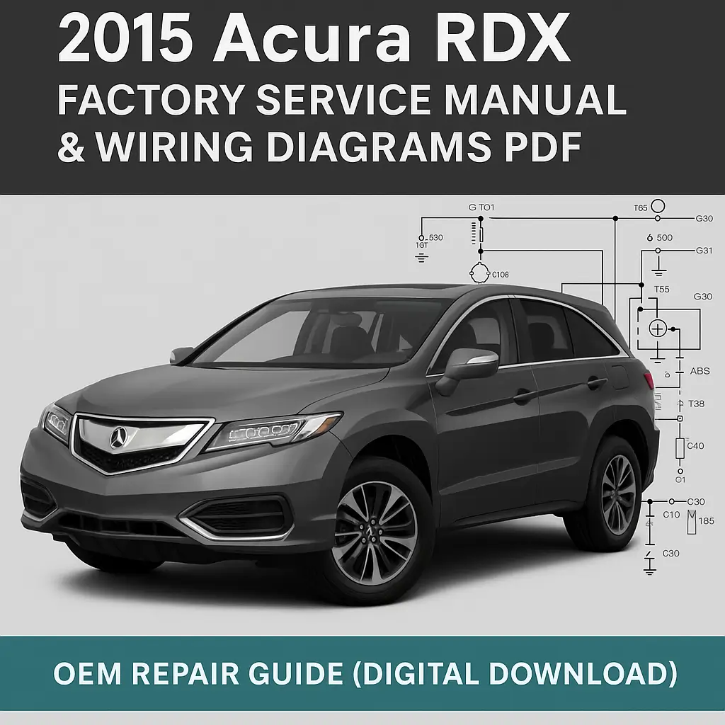 This 2015 Acura RDX Wiring & Service Manual provides complete diagrams and repair information across all systems. It is the official reference for technicians, covering powertrain, safety electronics, chassis, body control, and infotainment.