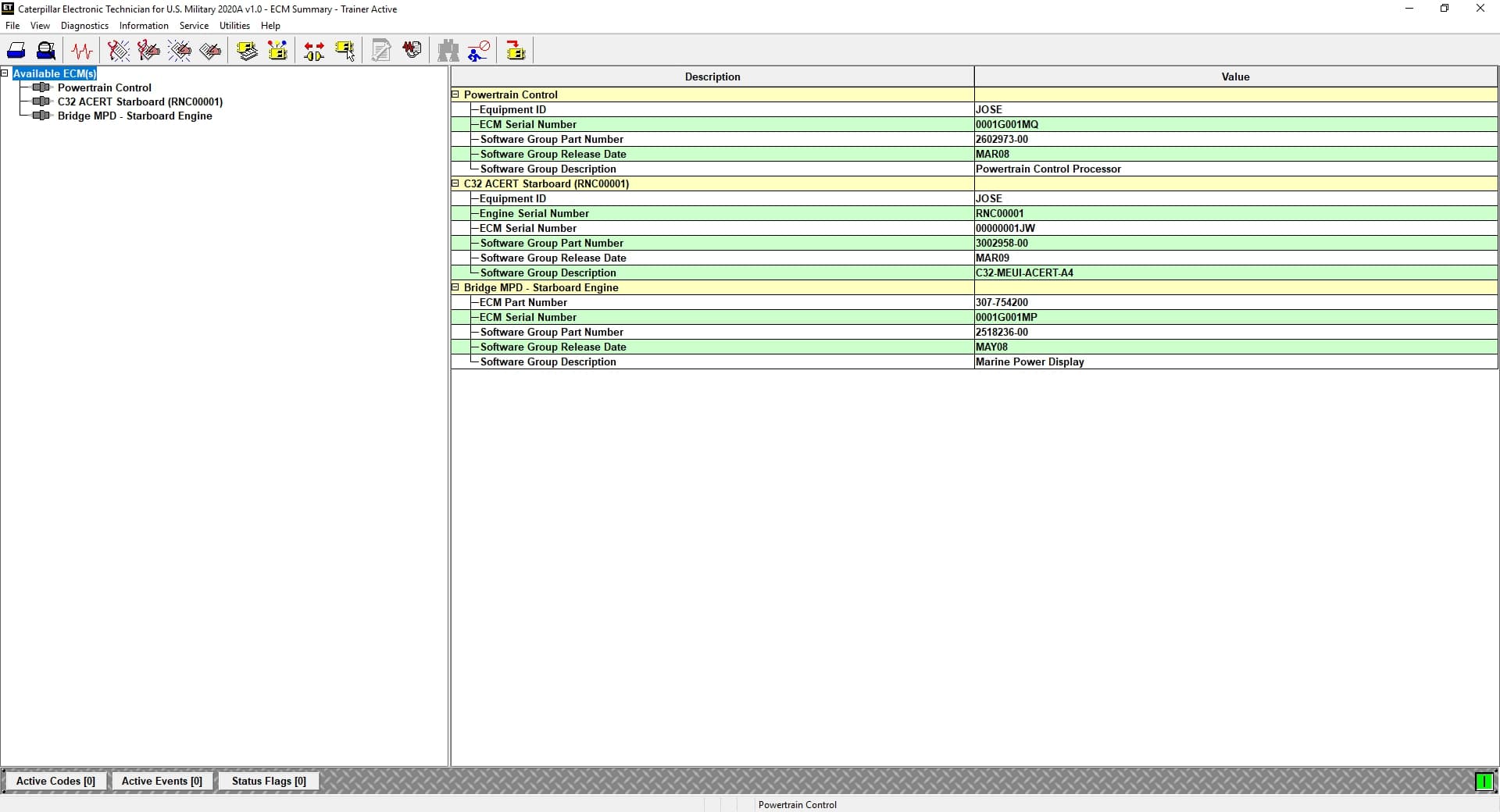| Caterpillar Serial No. Prefix | Caterpillar Model | Name/Military Model | ECM Description | Flash File Part No. | |