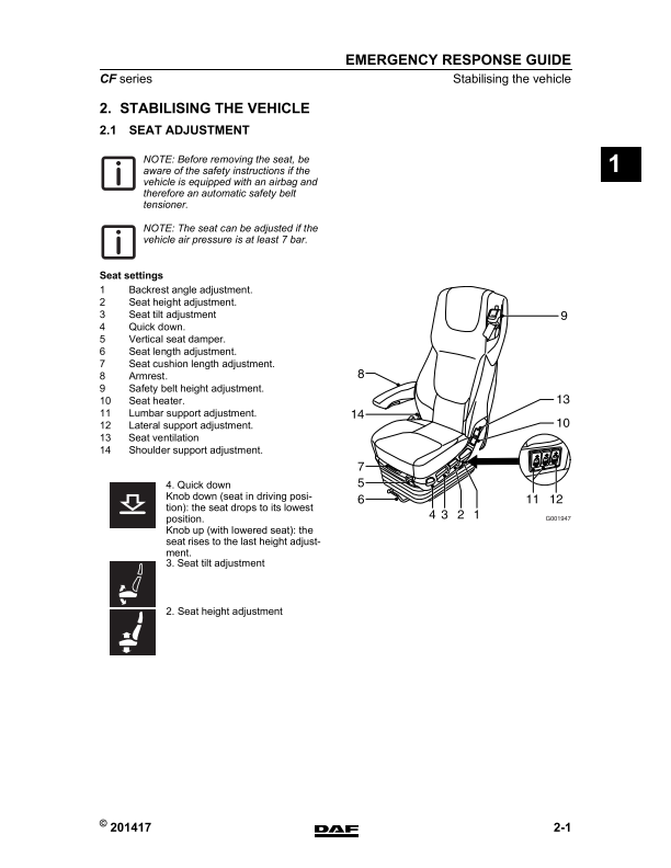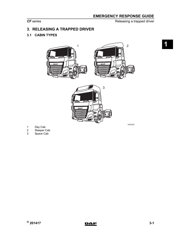 DAF CF Series Emergency Response Guide with high-quality graphics and illustrations.