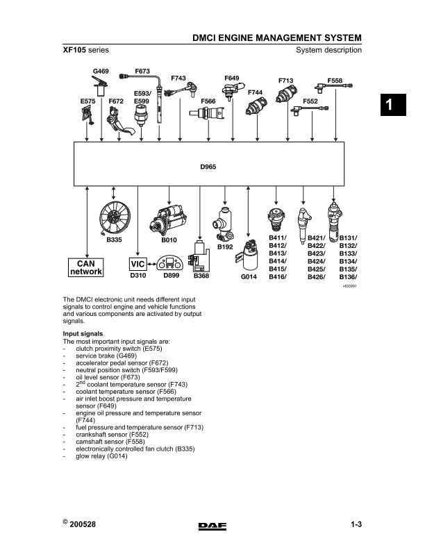 DAF XF105 System and Component Information (DMCI) Manual with high-quality graphics and illustrations.