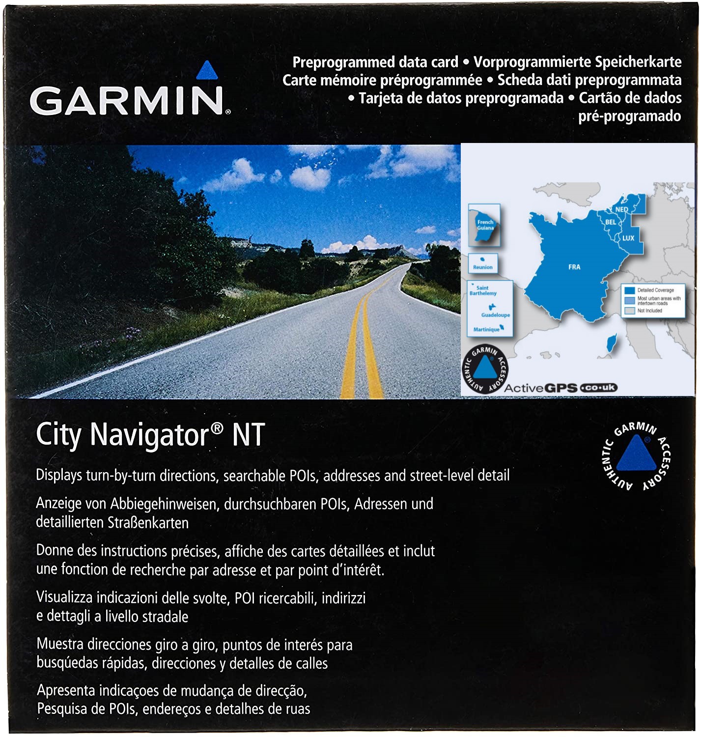 This Garmin City Navigator NT Europe version provides detailed road maps and points of interest for your Garmin compatible device, so you can navigate with precise and detailed directions to any address or intersection. Hit the streets of France, Belgium, Netherlands, and Luxembourg with confidence. Route to restaurants, gas stations, accommodations, attractions, and more.