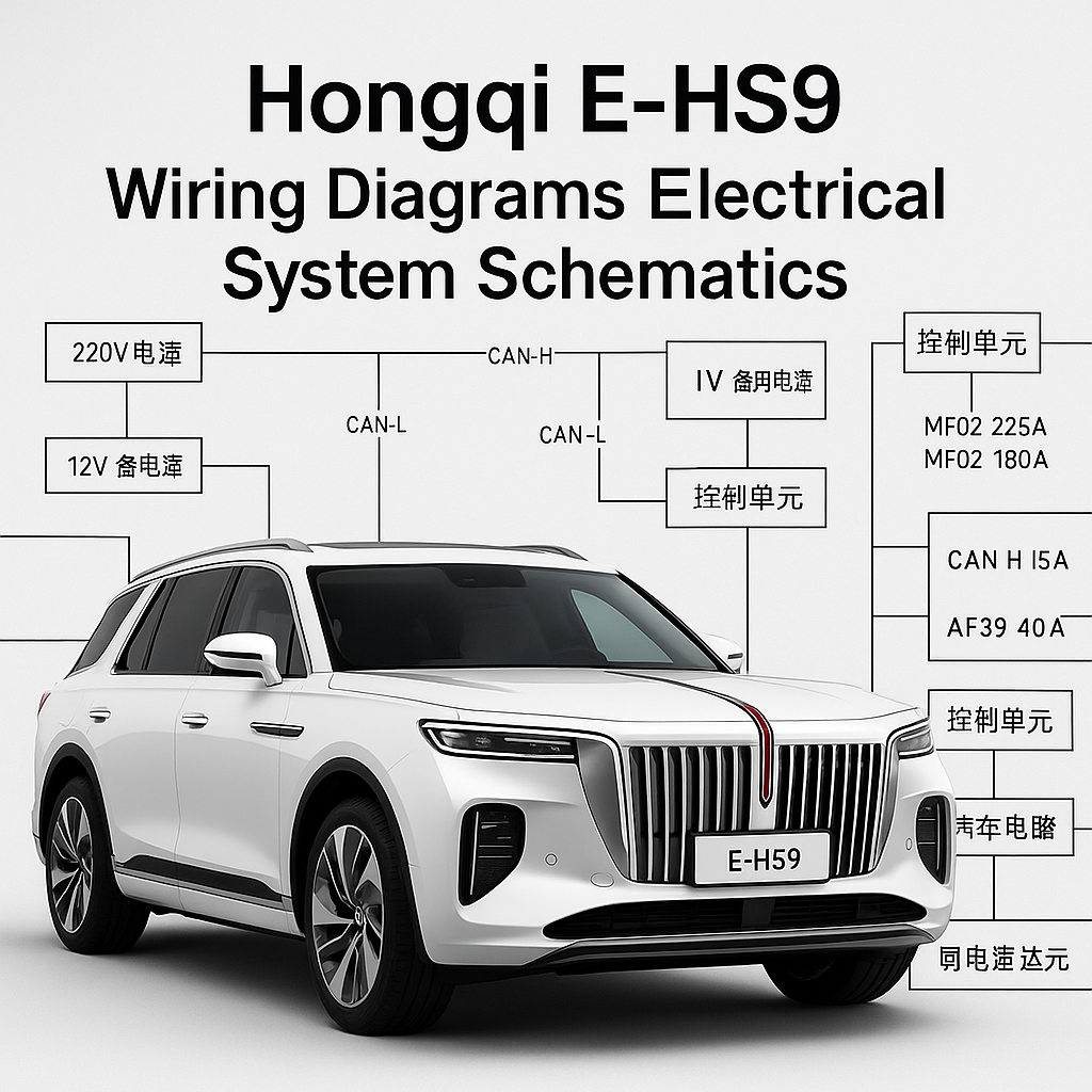 This comprehensive PDF manual for the Hongqi E-HS9 provides full wiring diagrams and schematics of every subsystem. Covering power, charging, safety, body electronics, infotainment, and advanced driver-assistance systems, it is an indispensable tool for diagnostics, repairs, and engineering analysis.