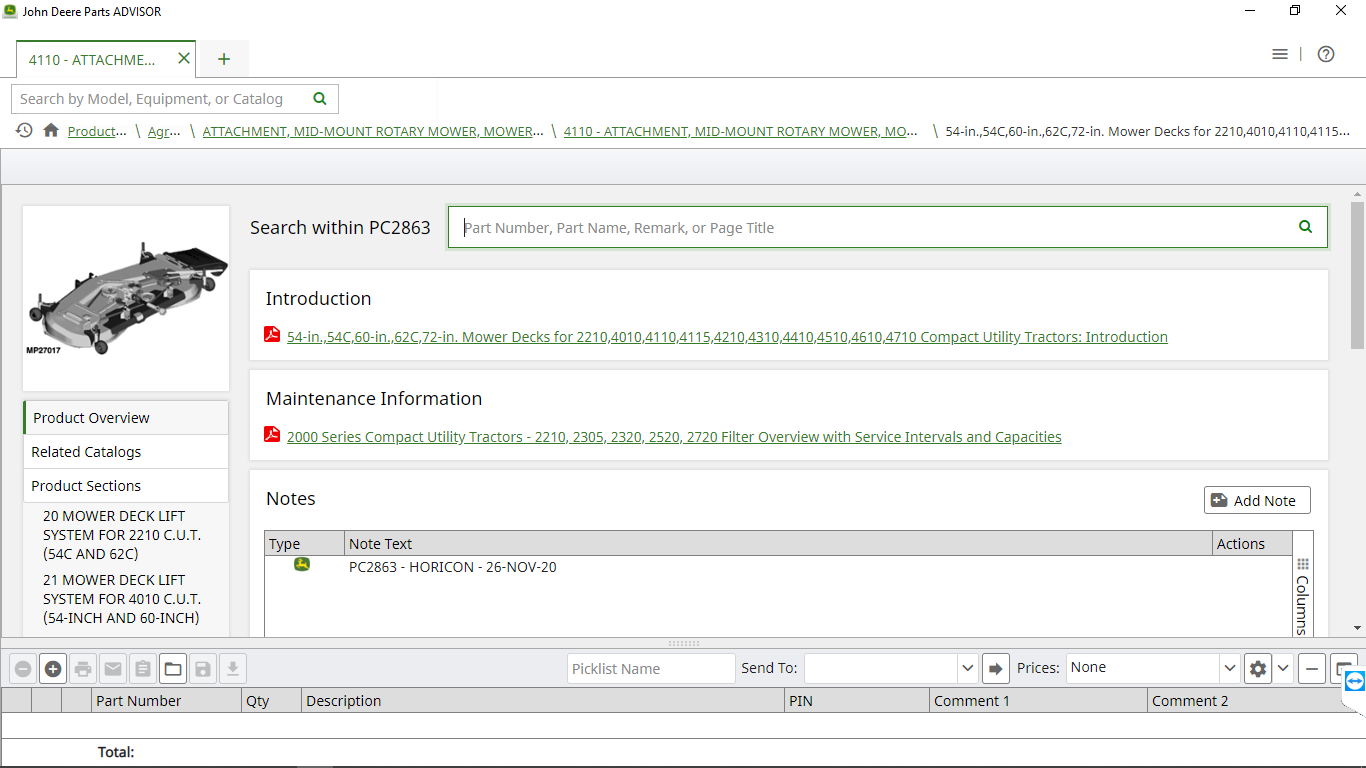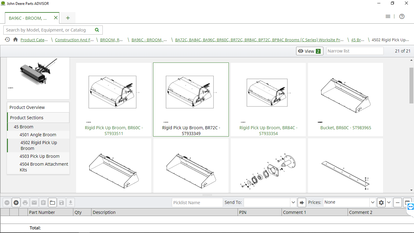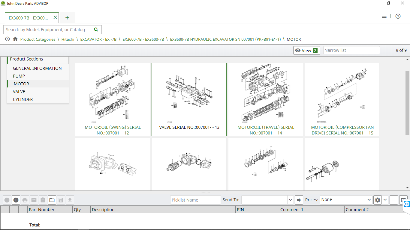 Access critical parts data by equipment type, model, PC number, or 13/17-character PIN. This makes it quick and reliable to find exactly what you need during maintenance or breakdowns.