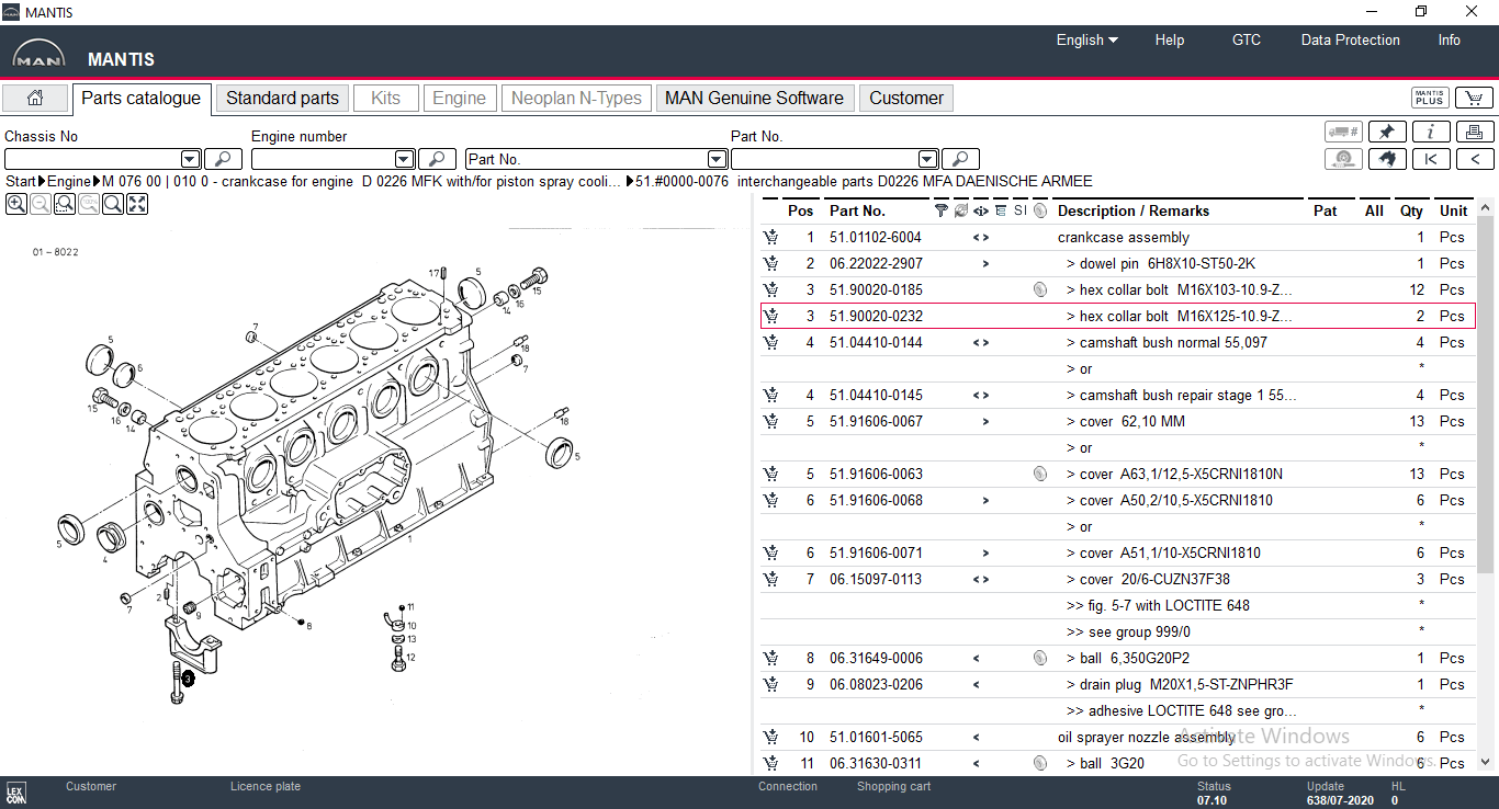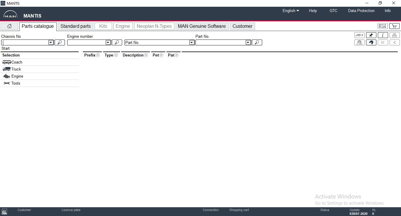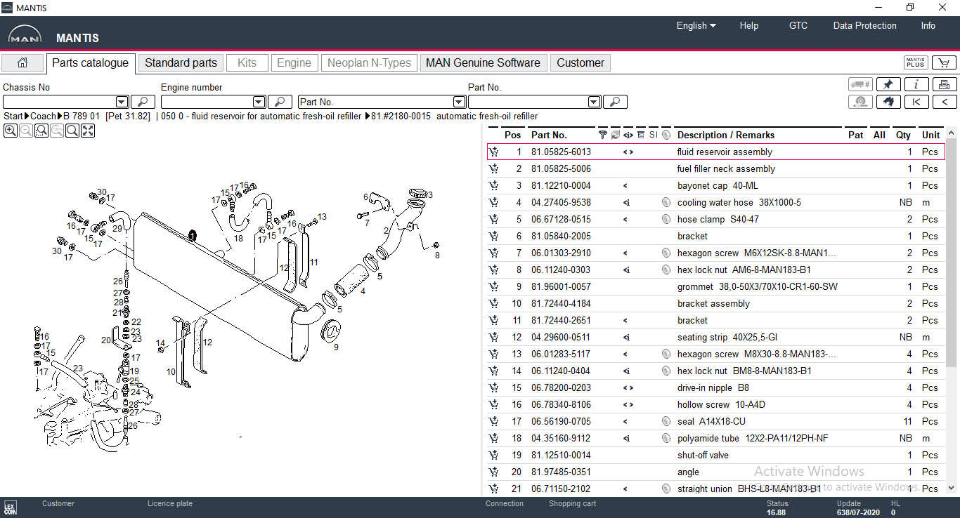 MAN Mantis electronic parts catalog presents spare parts for trucks, towing vehicles, buses, and other MAN engines. You can search for parts by typing the first 4 to 6 characters of VIN to determine the type (up to five characters enter the zero) and from 7 to 10 characters to determine the chassis number, you can also select the type and number of the chassis from the list of possible options.
