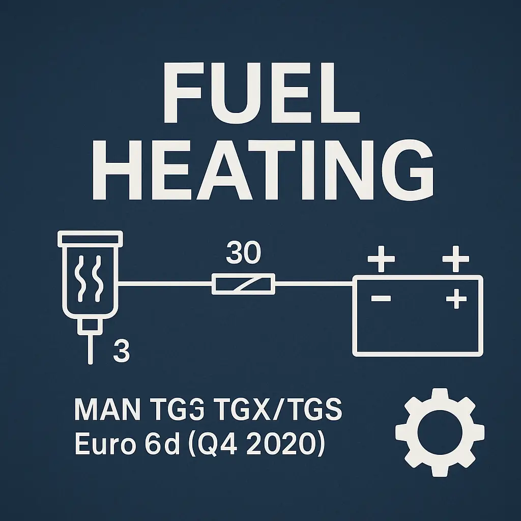 This official OEM schematic details the Fuel Heating System for MAN TG3 TGX/TGS Euro 6d trucks, released by MAN Truck & Bus SE (Werk München) in Q4 2020. It outlines the power routing, diagnostic feedback, and CAN communication for the PTC-based fuel filter heater used in cold start and low-temperature diesel operation.