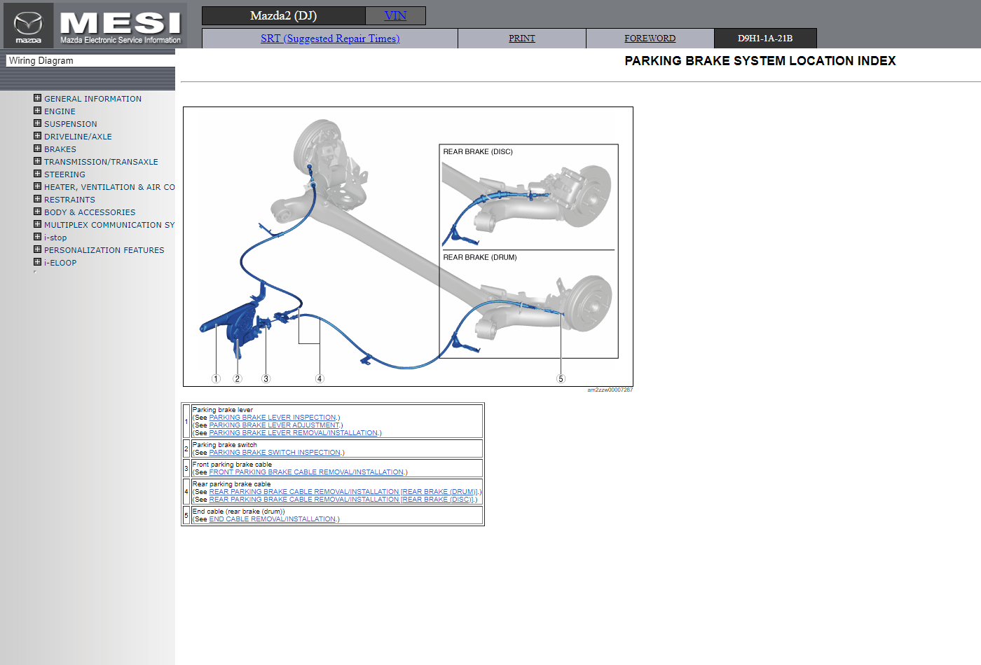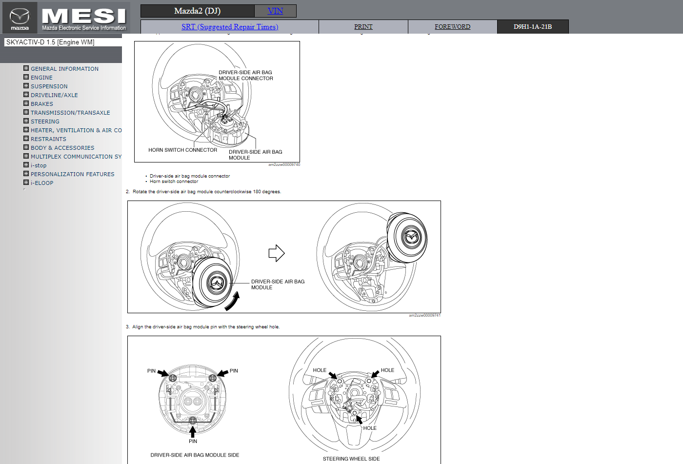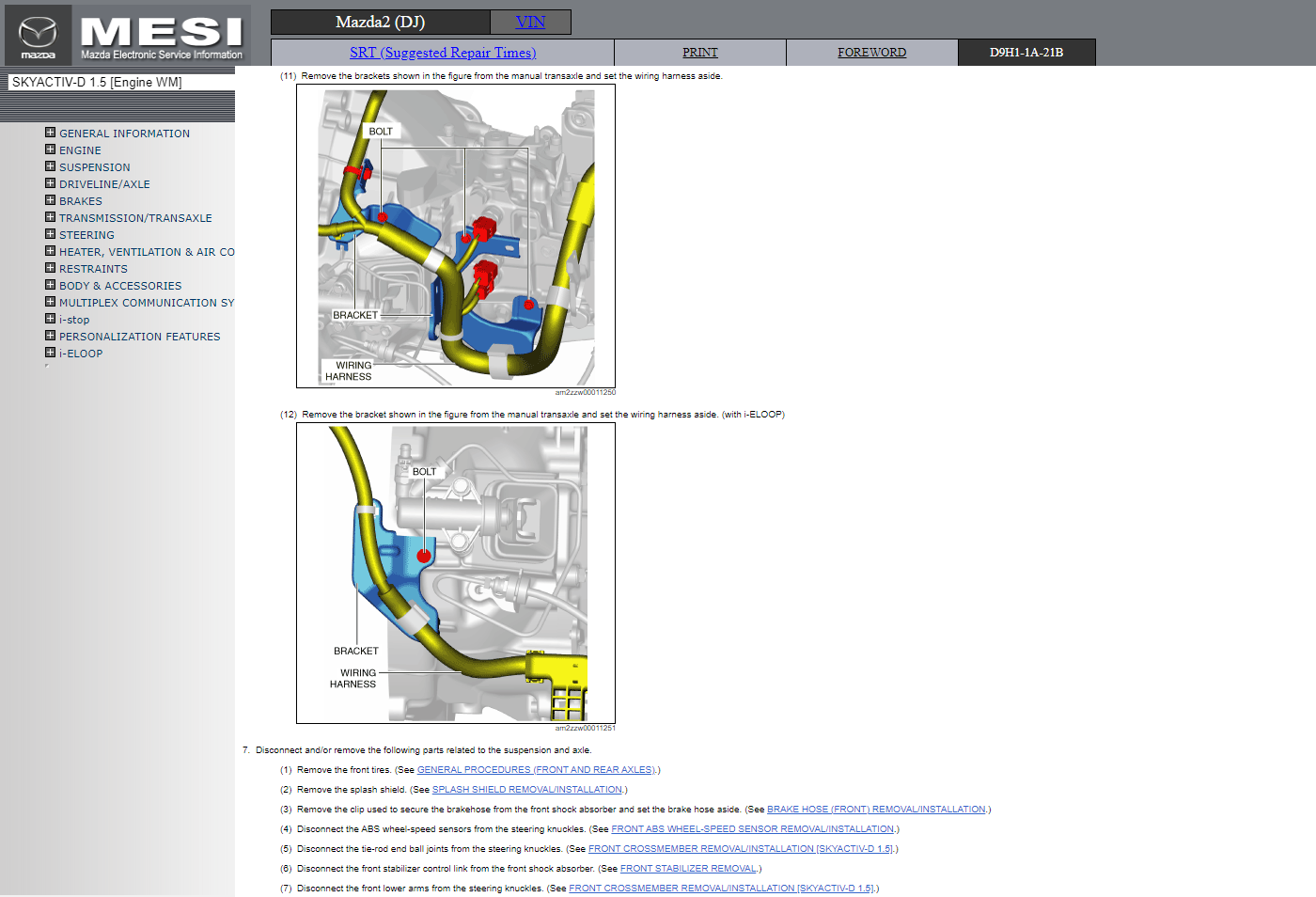 Original factory Electronic Service Information manual for Mazda2 (DJ) with high-quality 3D graphics and illustrations.