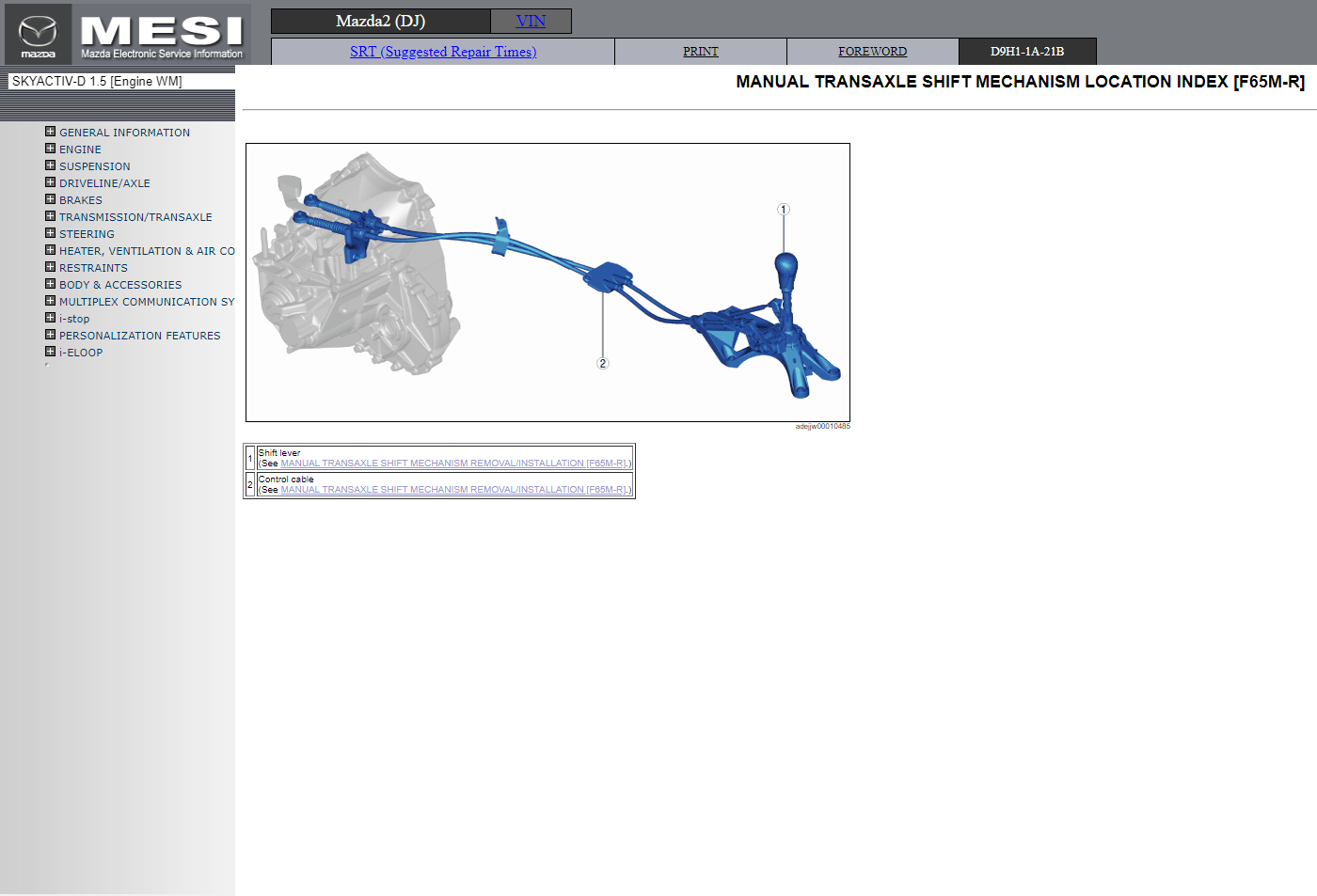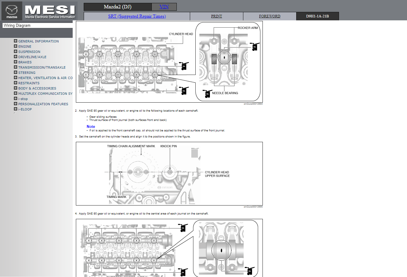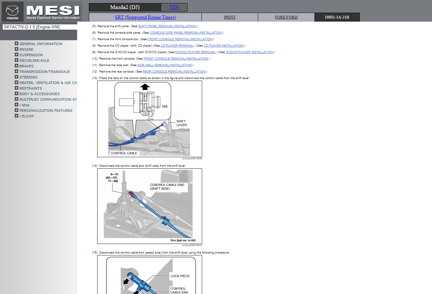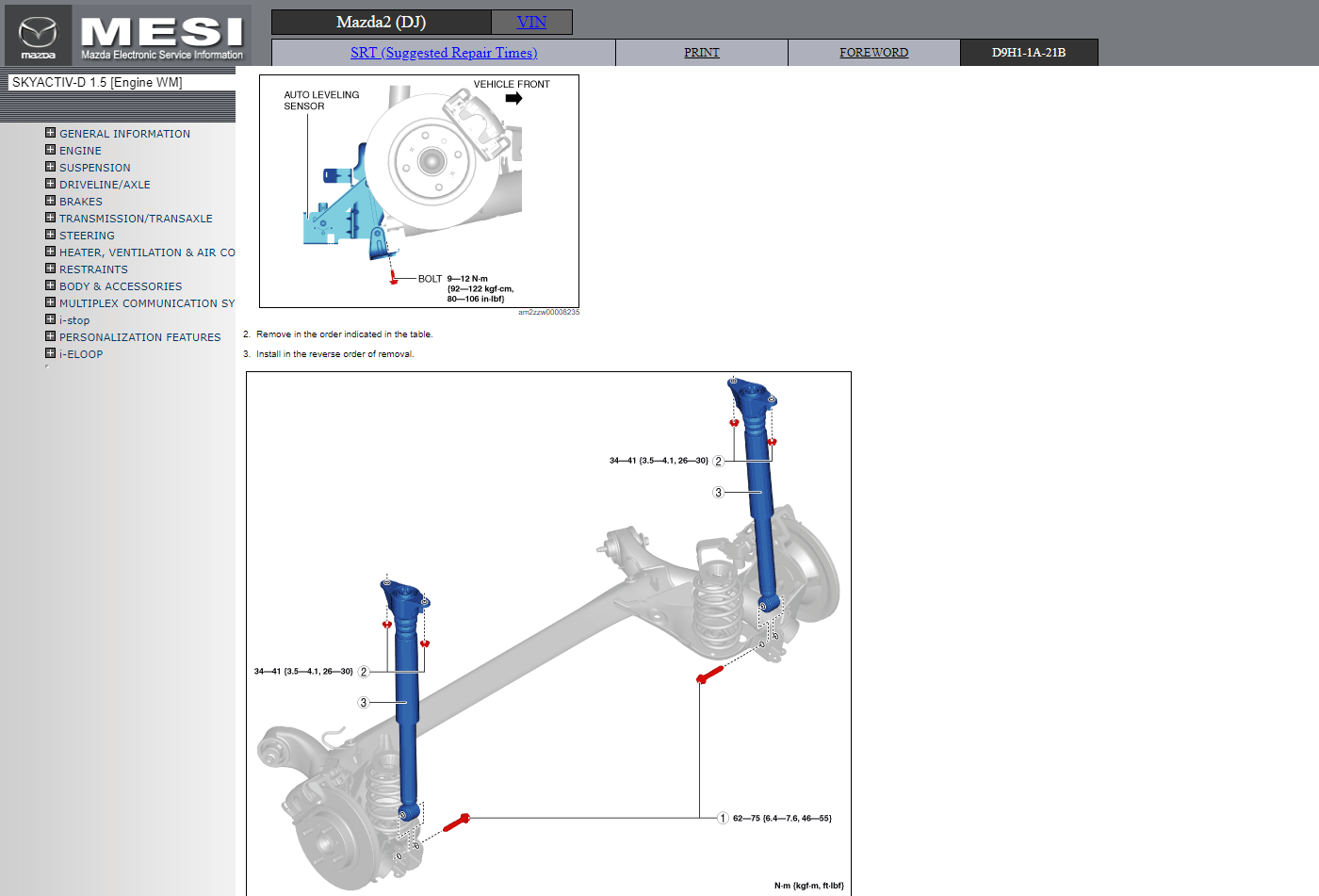 Original factory Electronic Service Information manual for Mazda2 (DJ) with high-quality 3D graphics and illustrations.