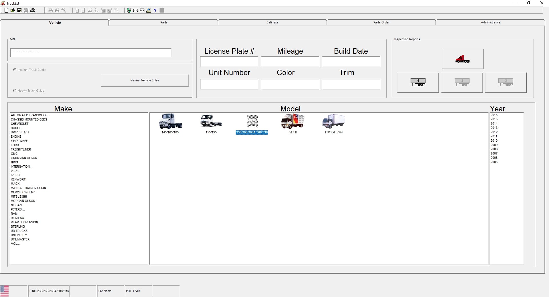 Access estimating data for 40+ manufacturers and 300+ vehicle configurations