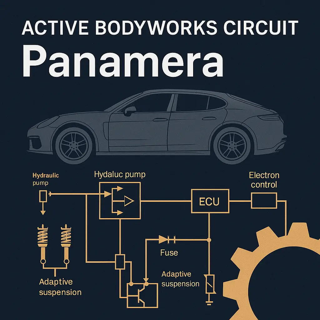 This OEM-level circuit diagram provides a focused view of the Active Bodyworks System used in the Porsche Panamera (likely 2015–2016 series). It specifically addresses the adaptive suspension and dynamic chassis control, critical for performance handling, stability, and comfort.
