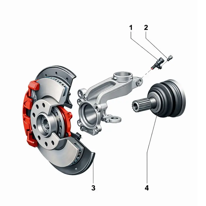Assembly overview of the ABS speed sensor on the front axle