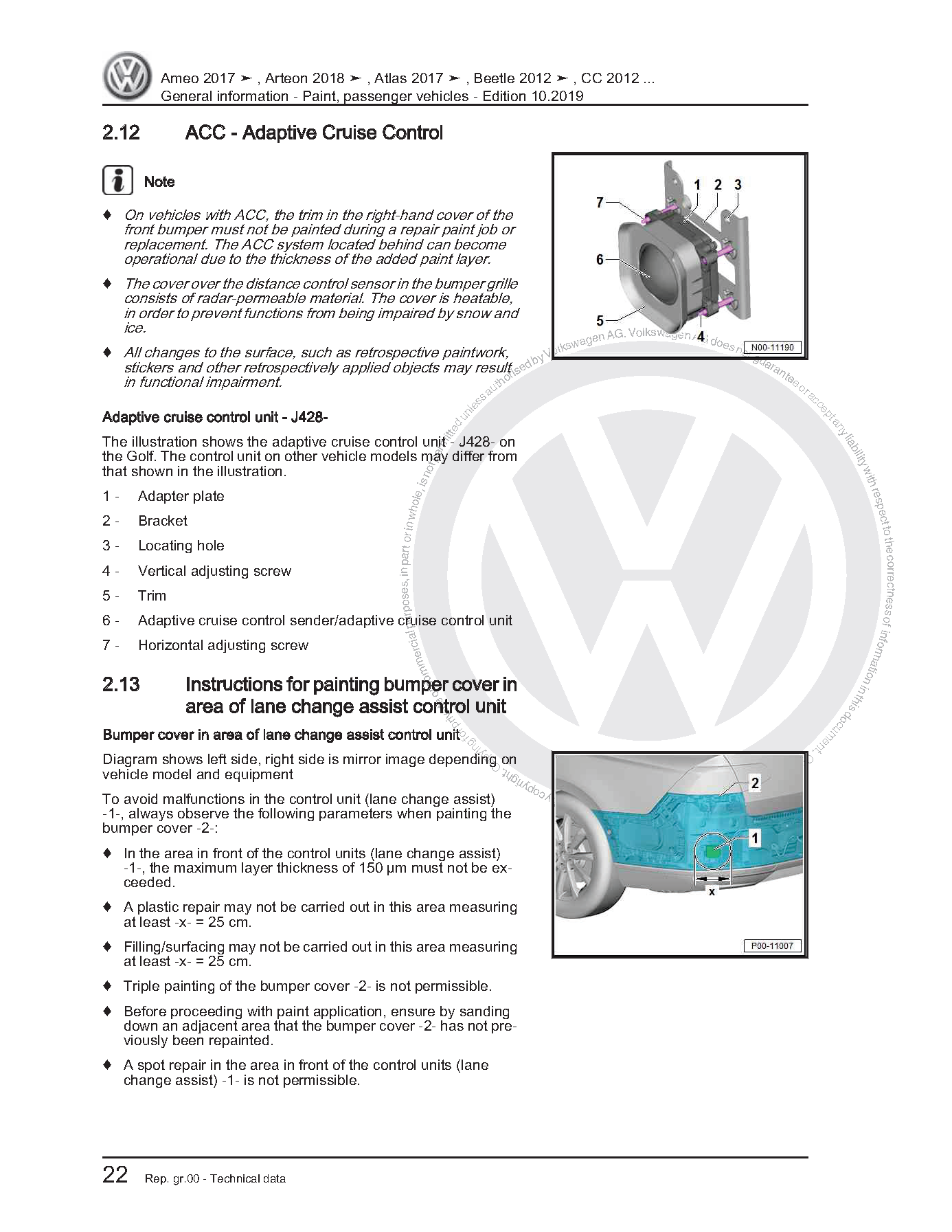 - Instructions for painting bumper cover in area of lane change assist control unit