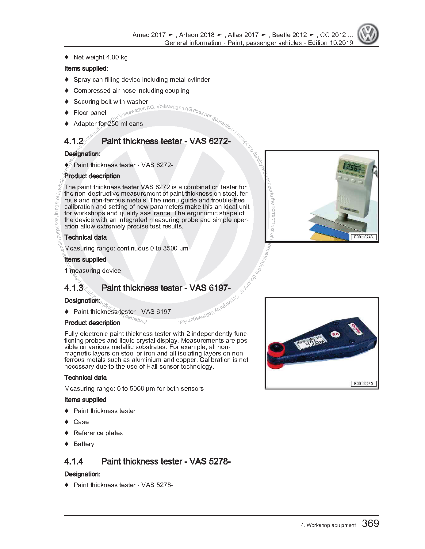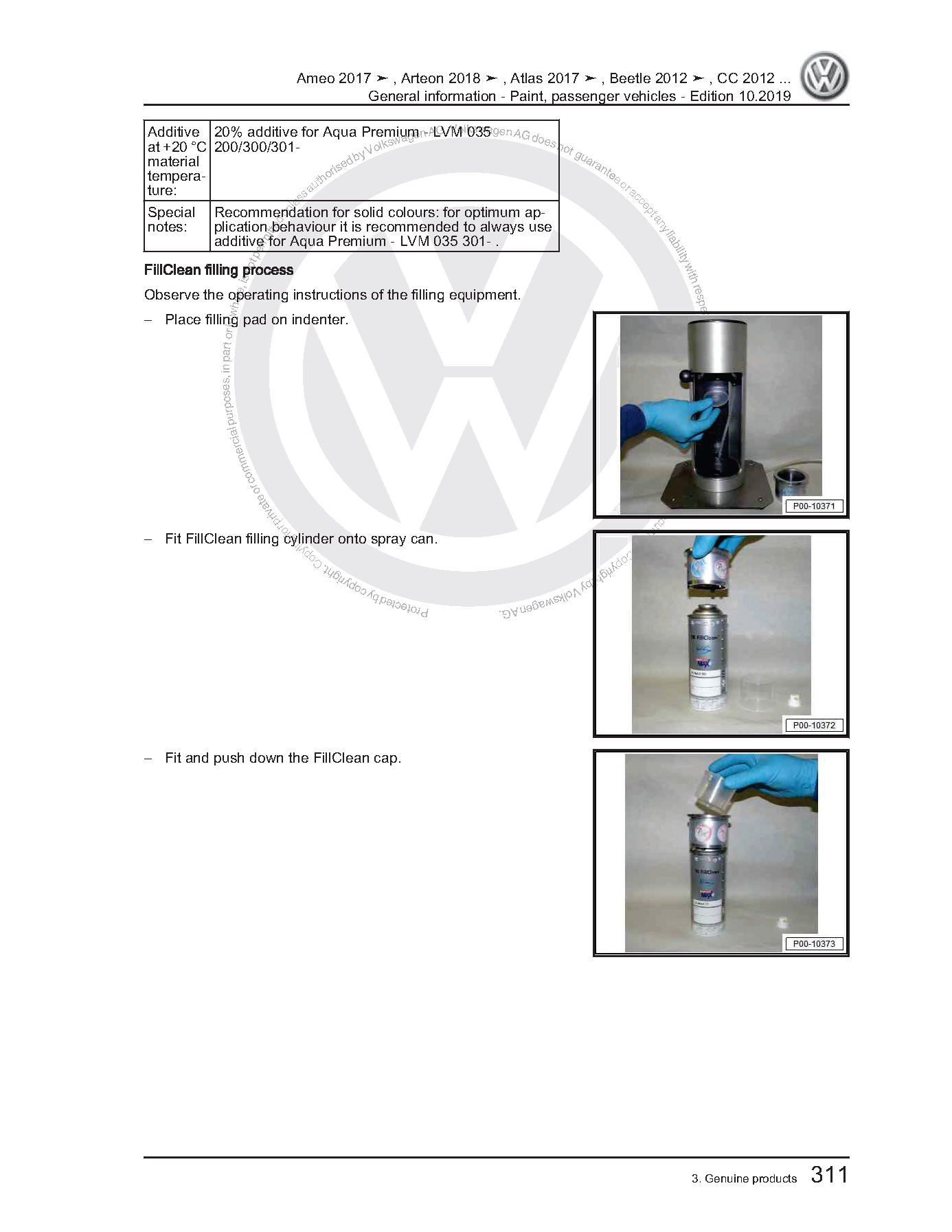 Volkswagen (VW) Paint Passenger Vehicles Workshop Manual with high-quality graphics and illustrations.