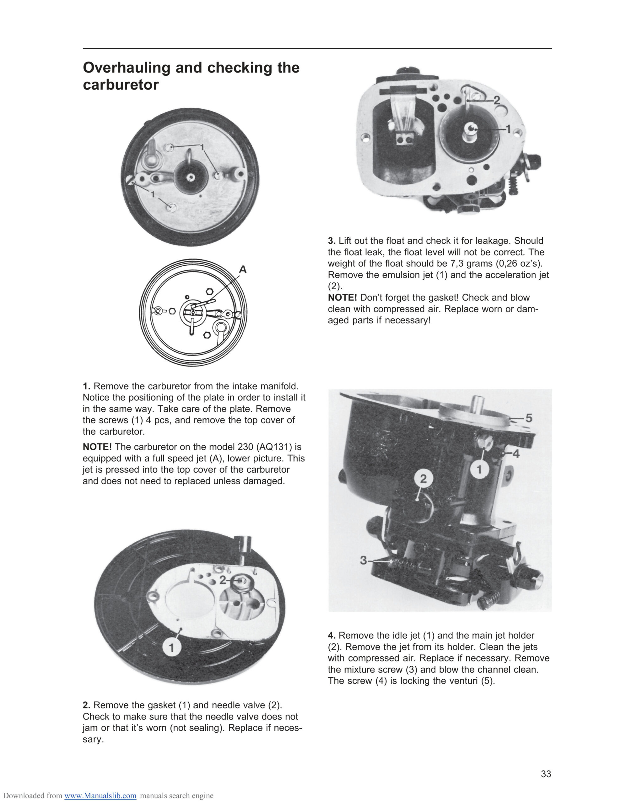 - Overhauling the valve system 230, 250, AQ131, AQ151