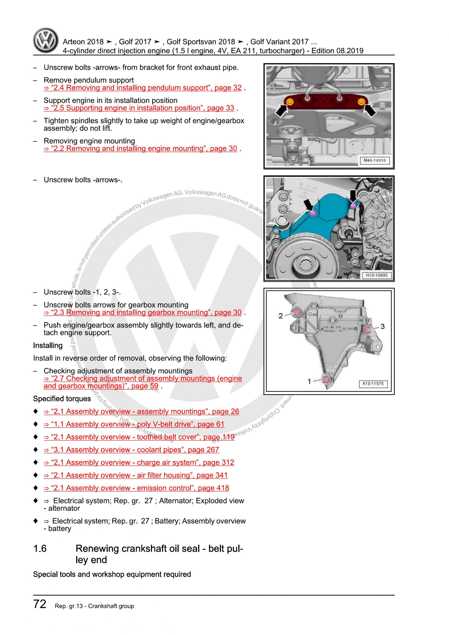 VW 4-Cylinder Direct Injection Engine (1.5 l Engine, 4V, EA 211, Turbocharger) OEM Workshop Manual with high-quality graphics and illustrations.