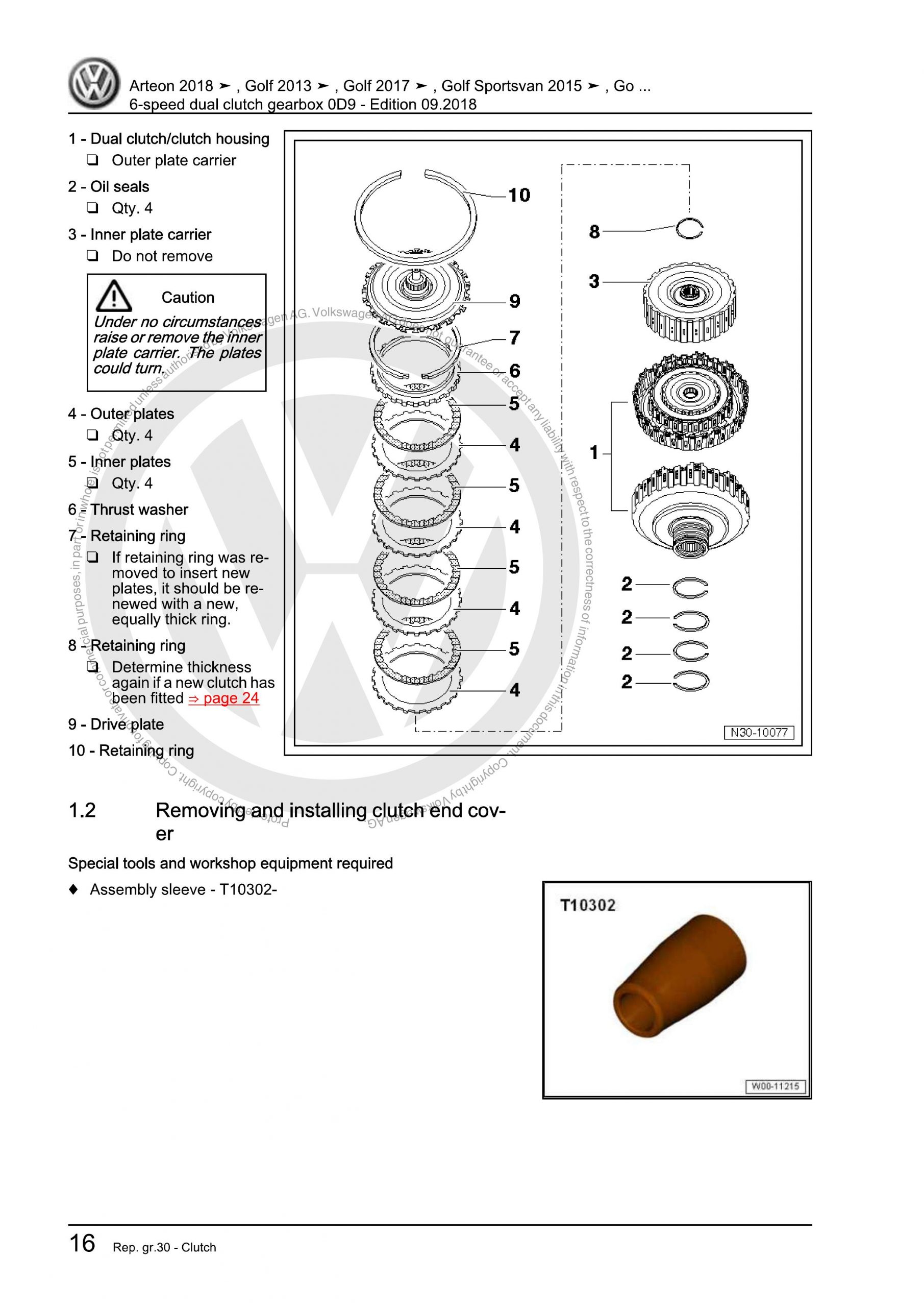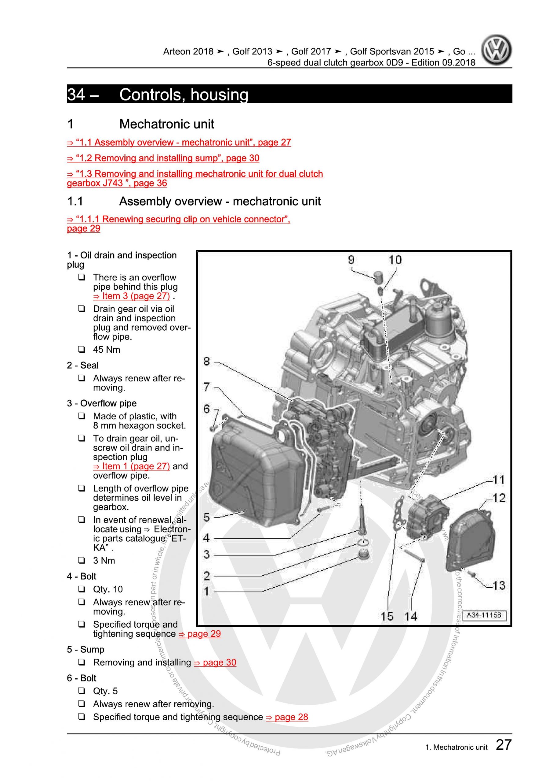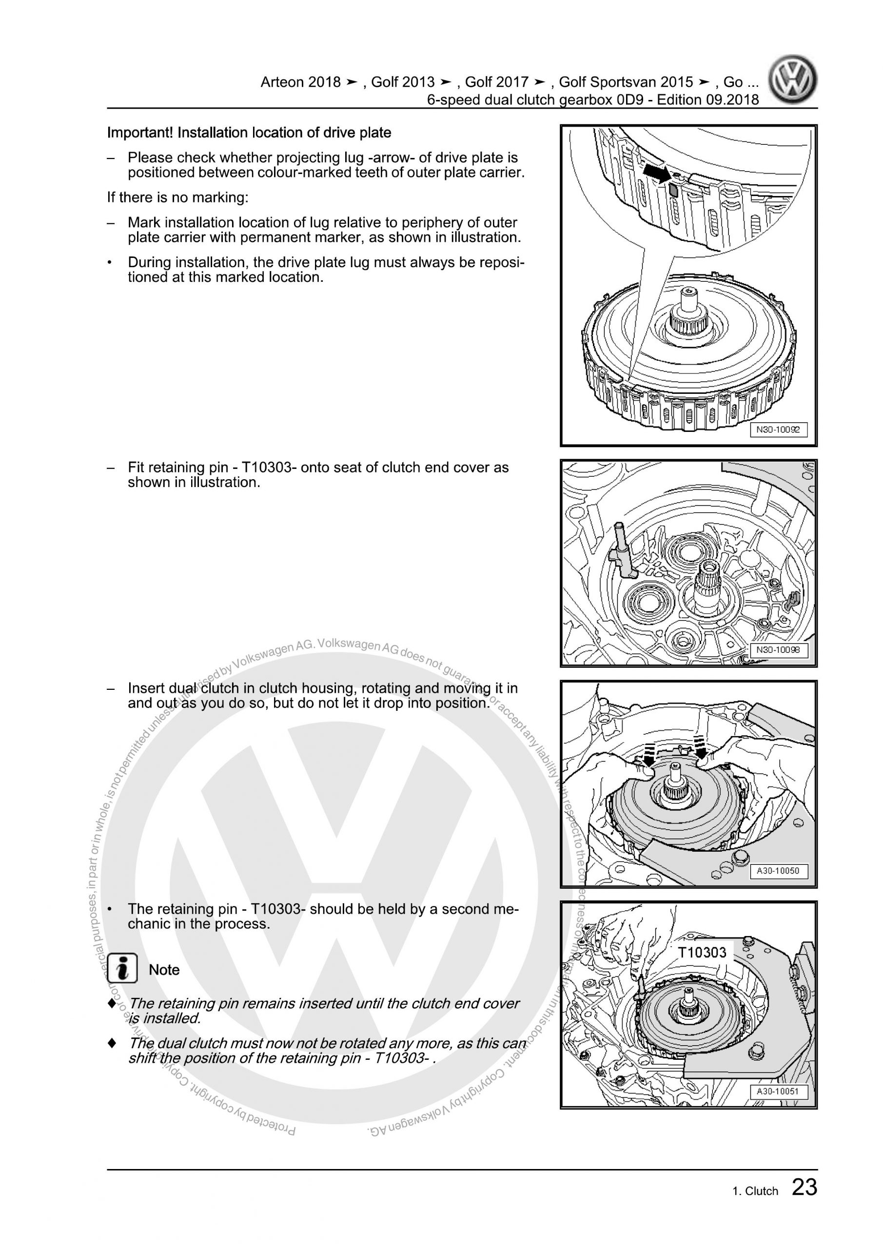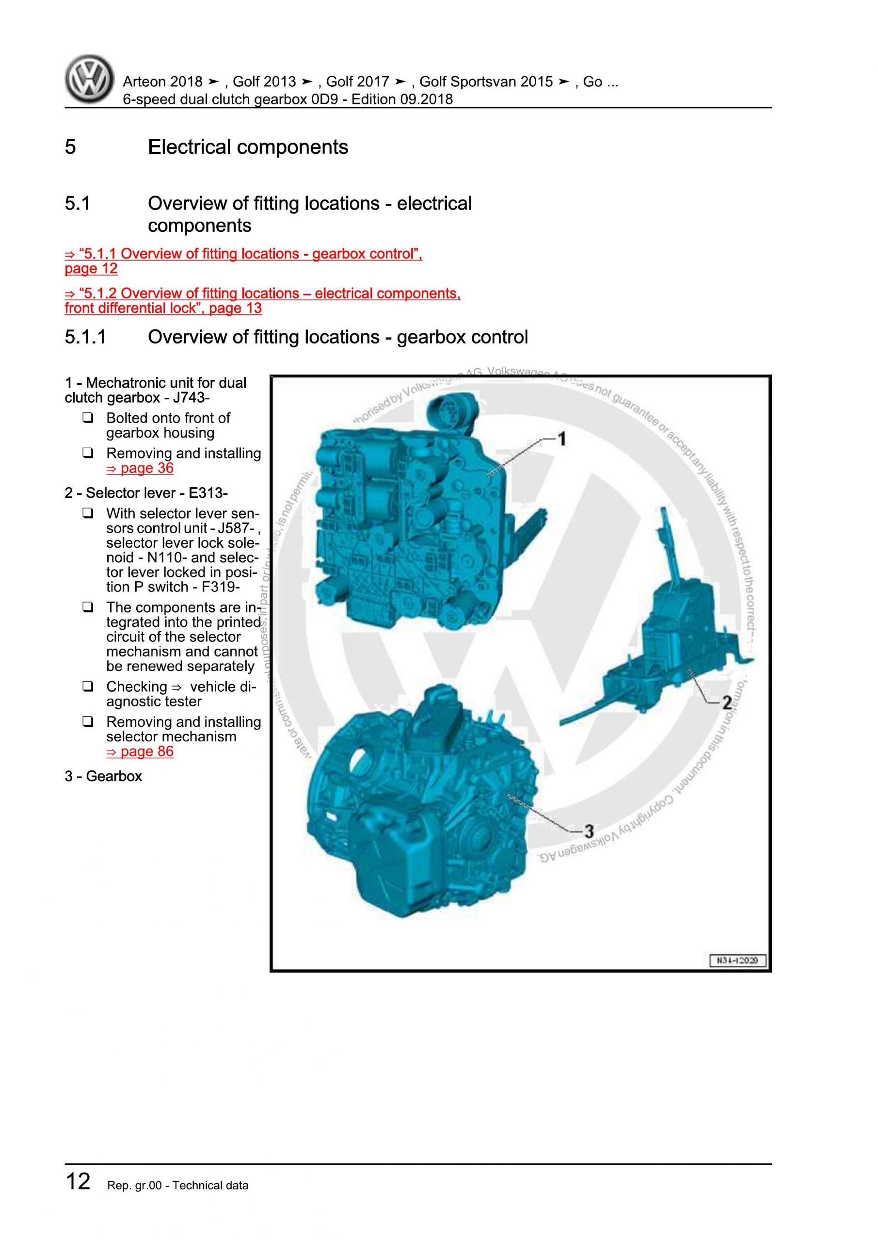 VW 6-Speed Dual Clutch Gearbox 0D9 OEM Workshop Manual with high-quality graphics and illustrations.