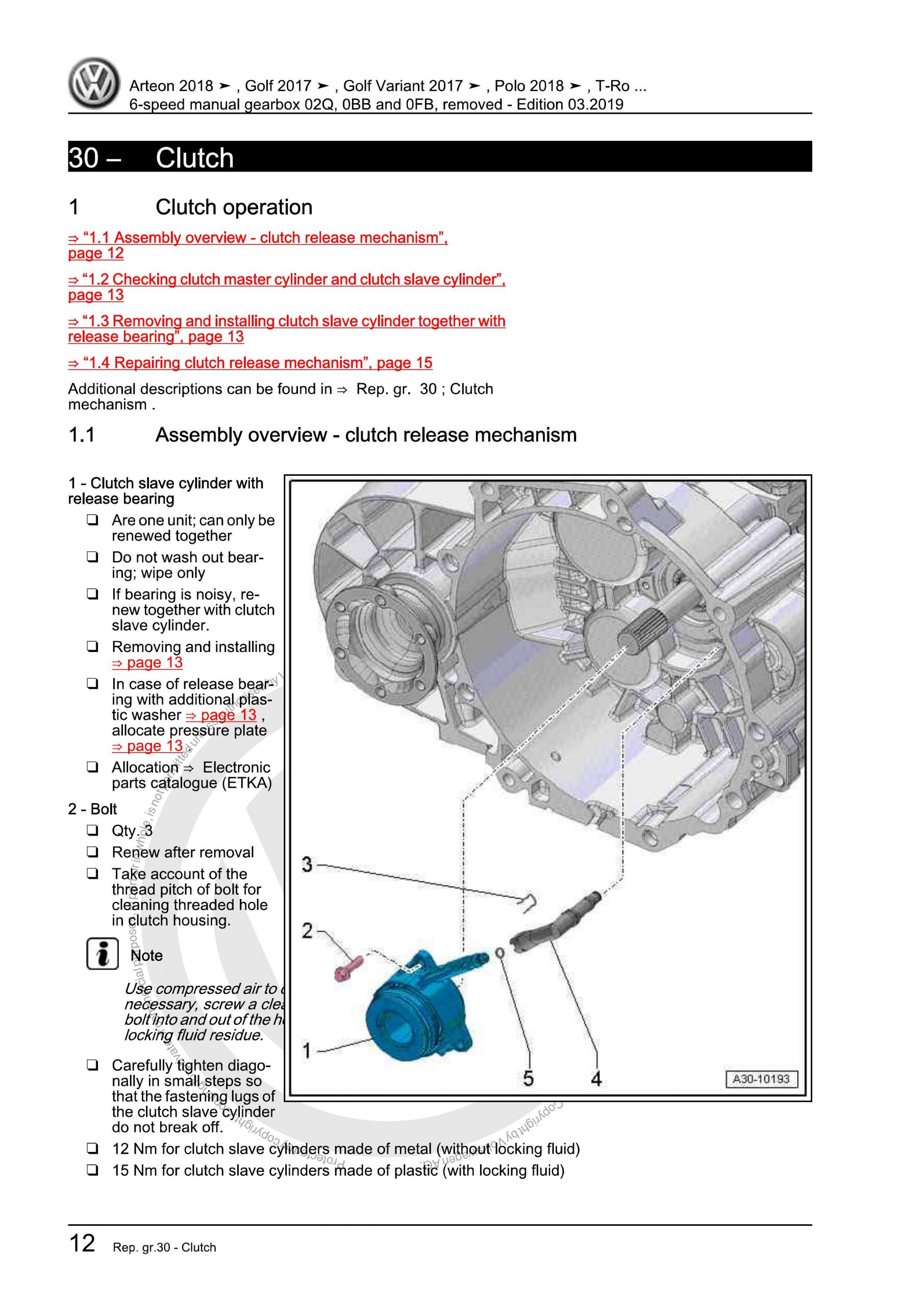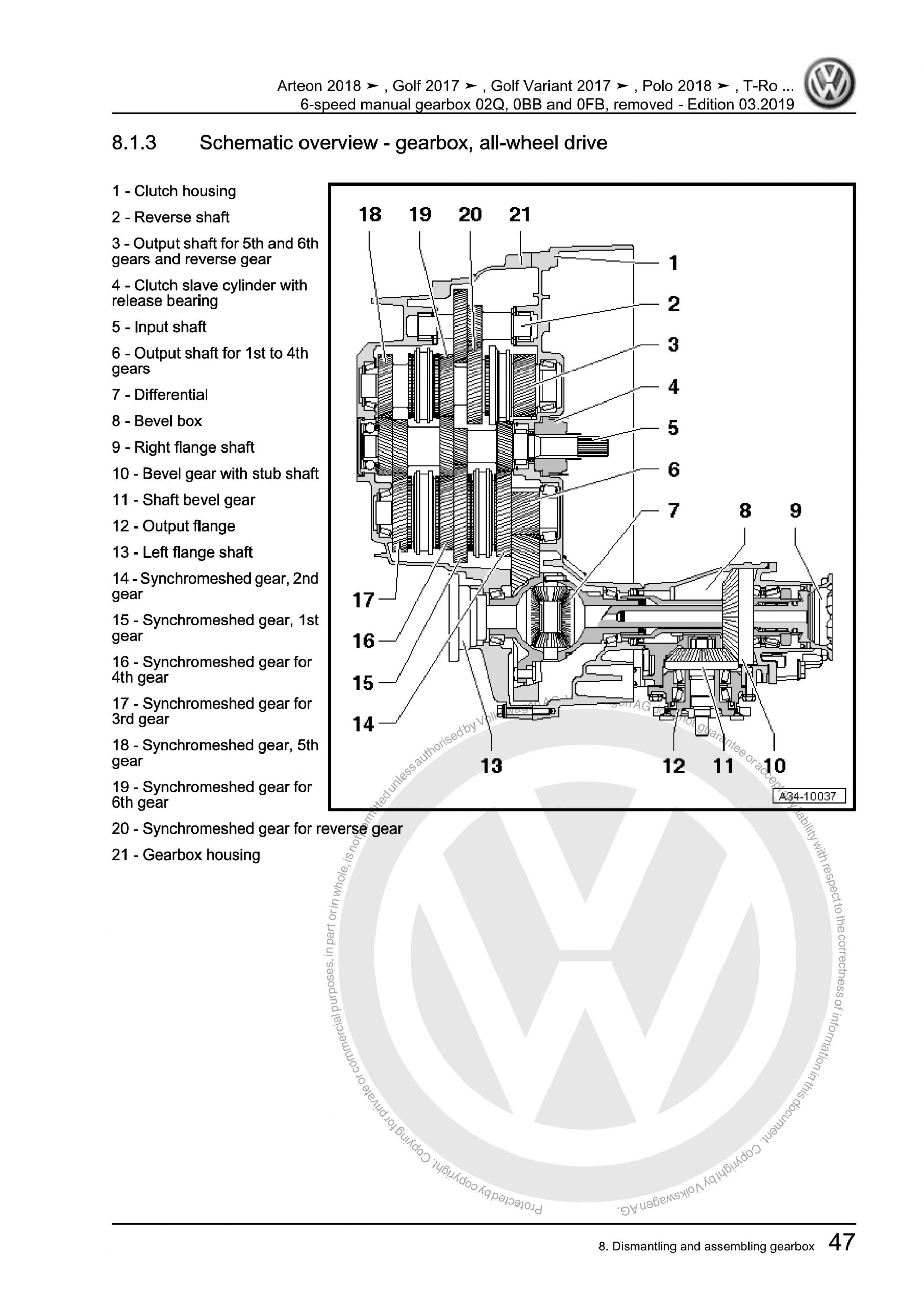 VW 6-Speed Manual Clutch Gearbox 02Q/0BB/0FB OEM Workshop Manual with high-quality graphics and illustrations.