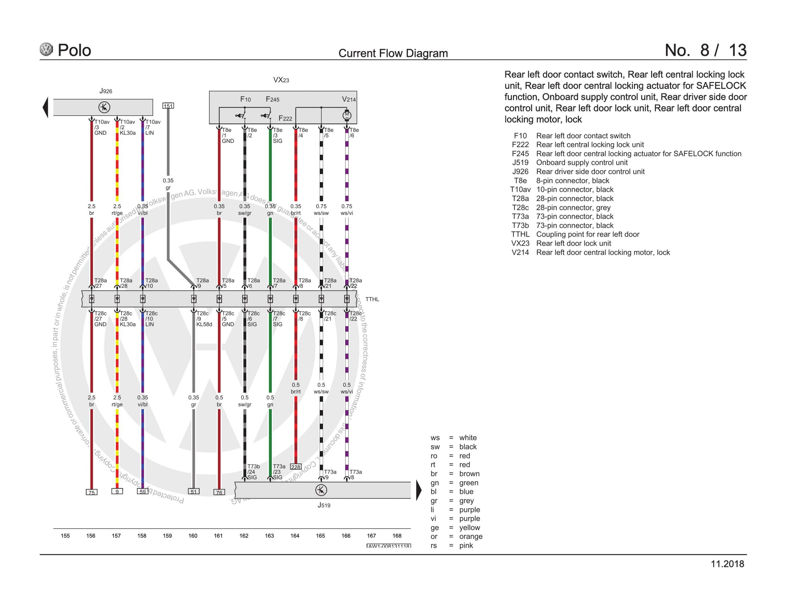 VW Polo (AW/BZ) Fuse Assignment OEM Electrical Wiring Diagrams with high-quality graphics and illustrations.